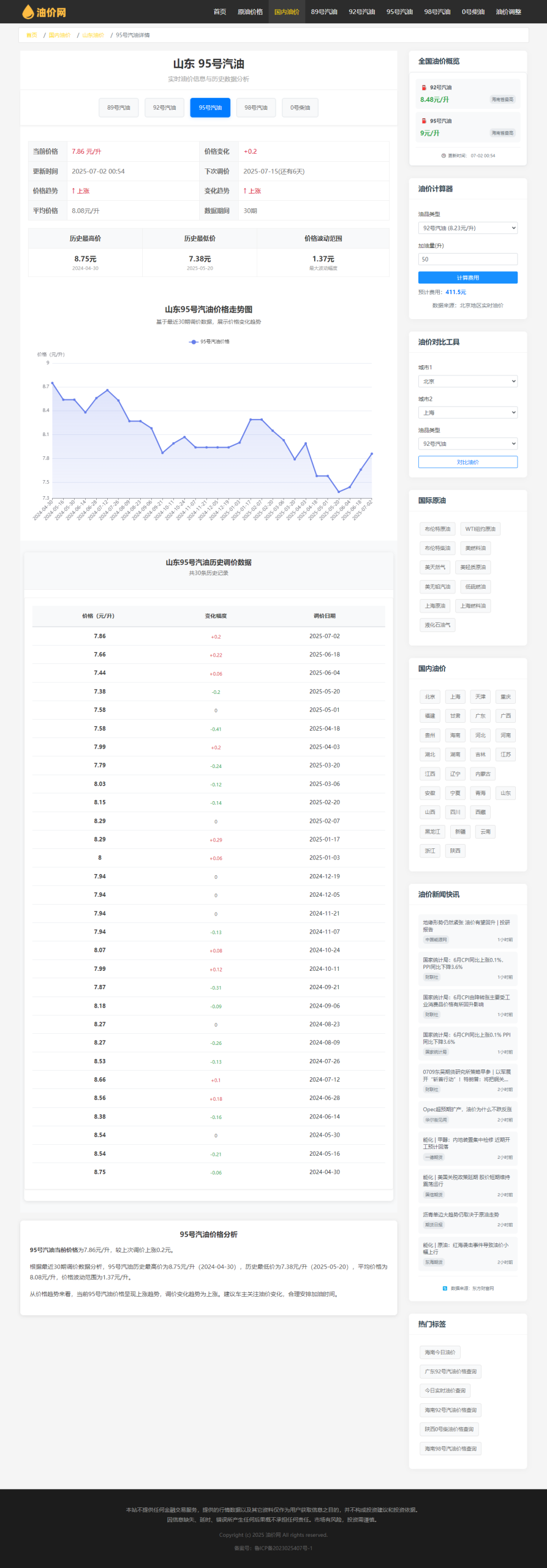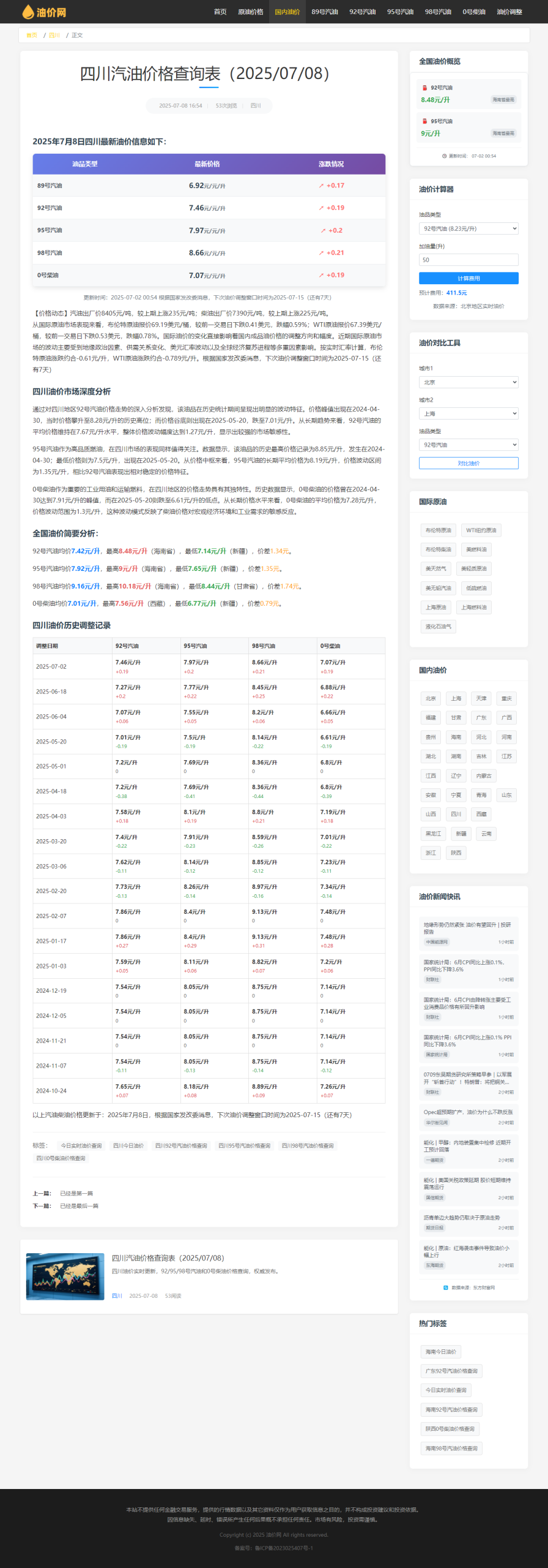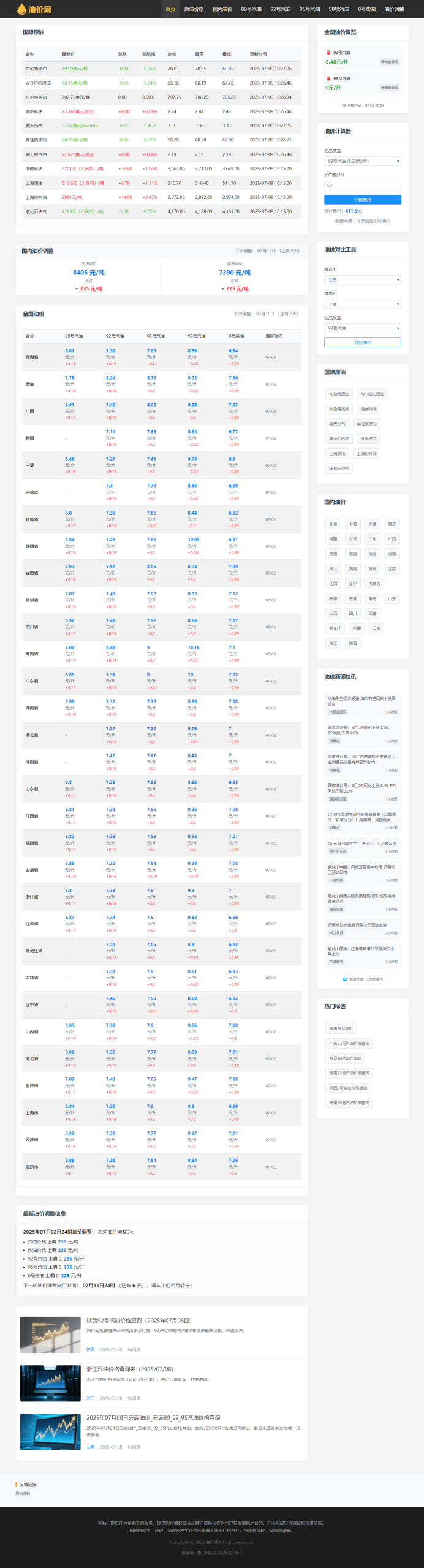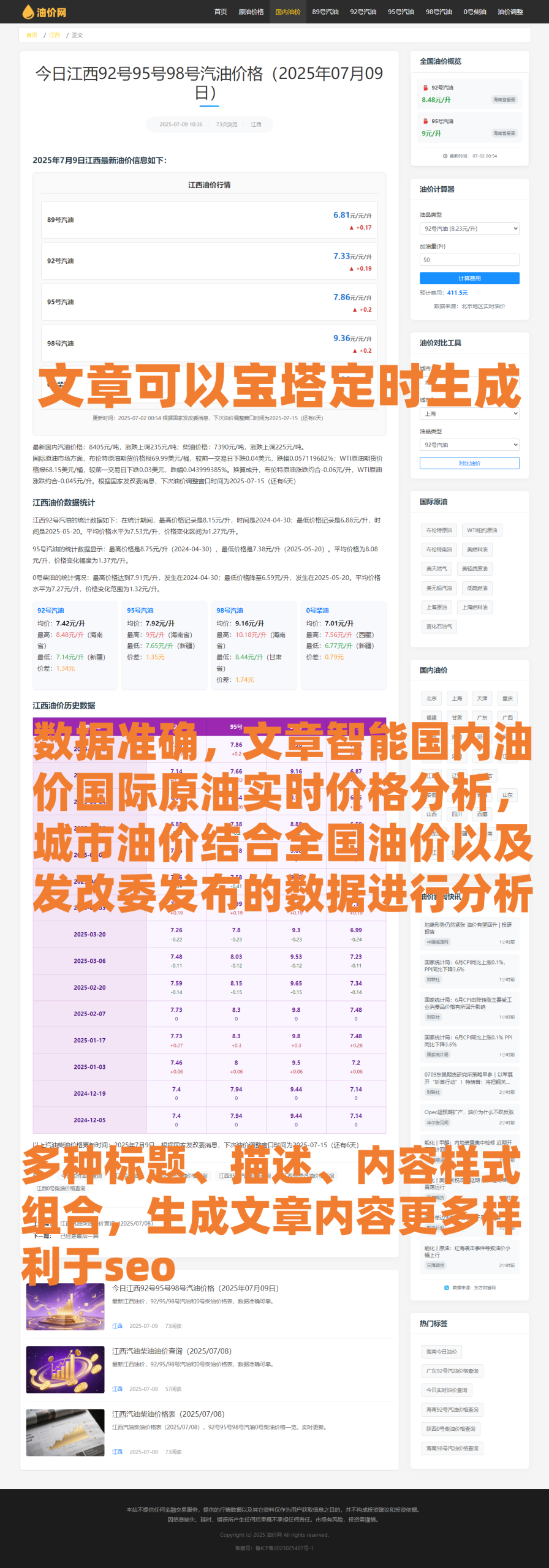 不同城市油价,原油价格数据自动更新! - 文章自动更新系统
